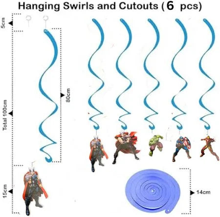 Avengers Superhero Theme Birthday Decorations – 12 Pcs Hanging Swirls (Cardstock) | Super Hero Party Decoration Items