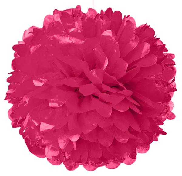 12-inch bright hot pink tissue pom poms ideal for bold, festive, and feminine party décor.