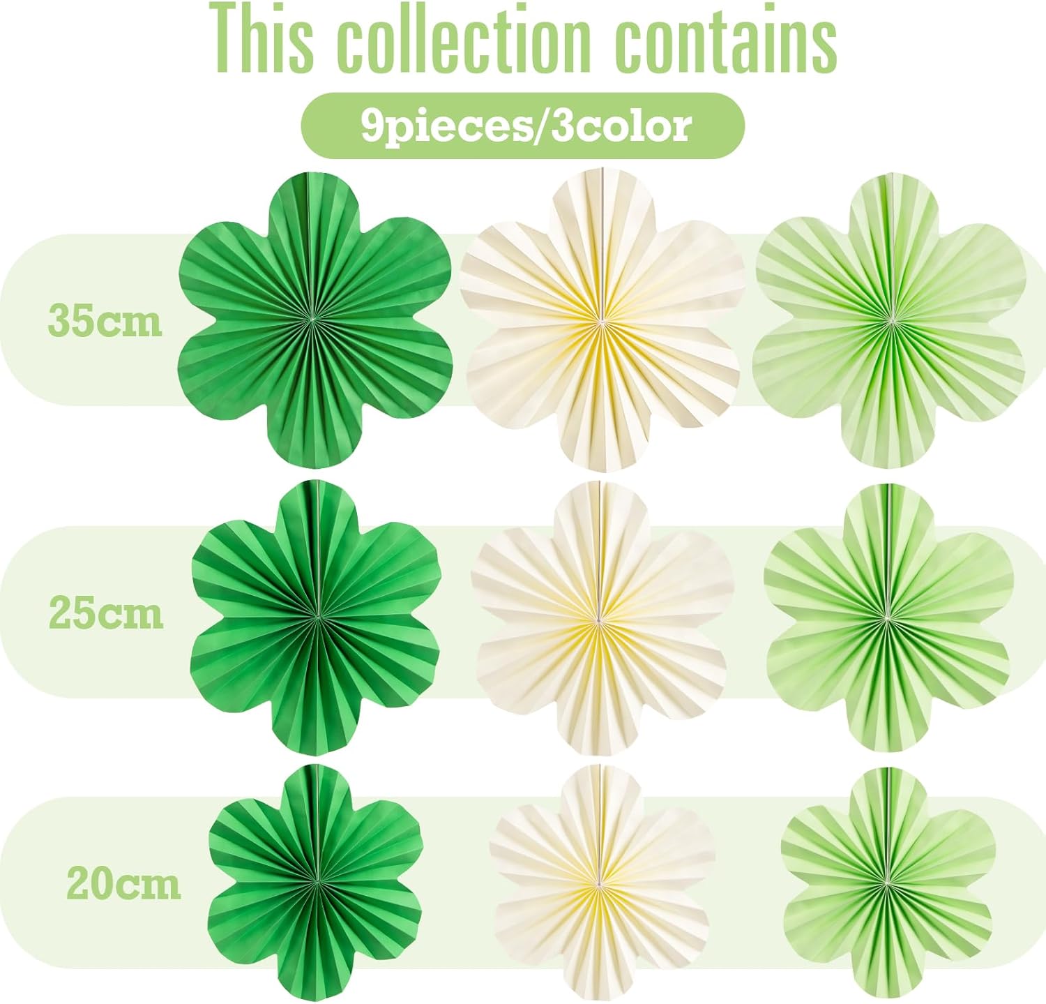 Green & Ivory Paper Flower Wall Decor – Set of 9 Elegant Floral Backdrops