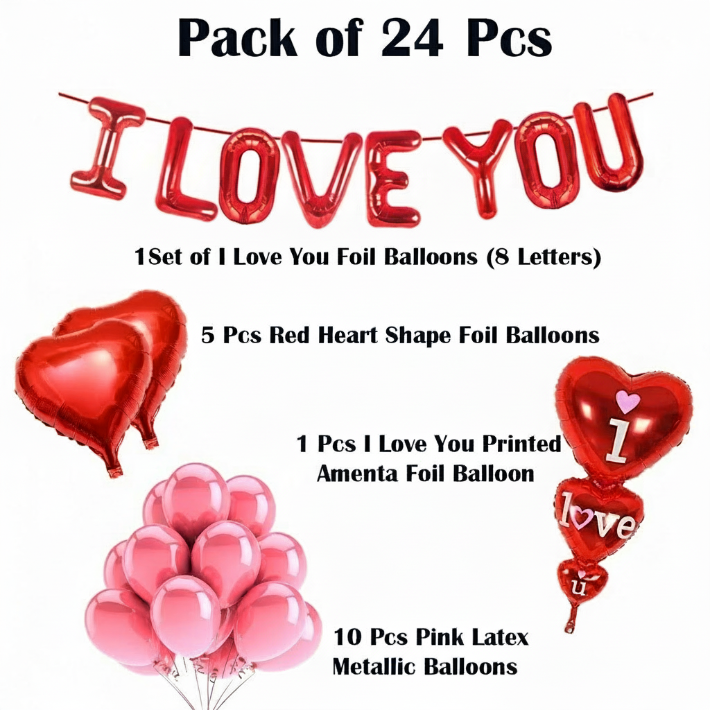 Celebrate love in style with this 24-piece red “I Love You” balloon decoration kit—perfect for anniversaries, Valentine’s Day, proposals, engagements, and romantic birthday surprises.
