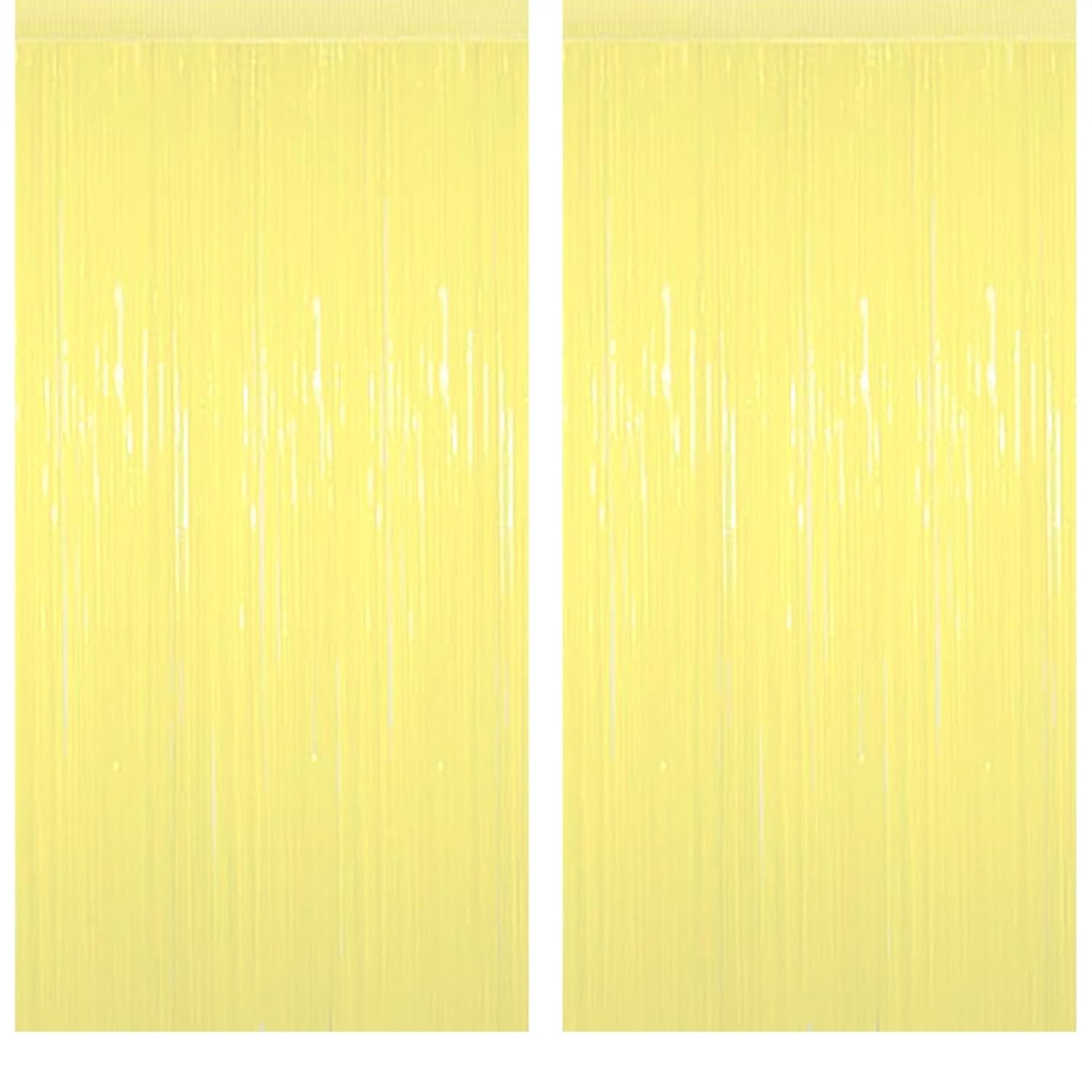 🌻 2 × Pastel Yellow Foil Fringe Curtains