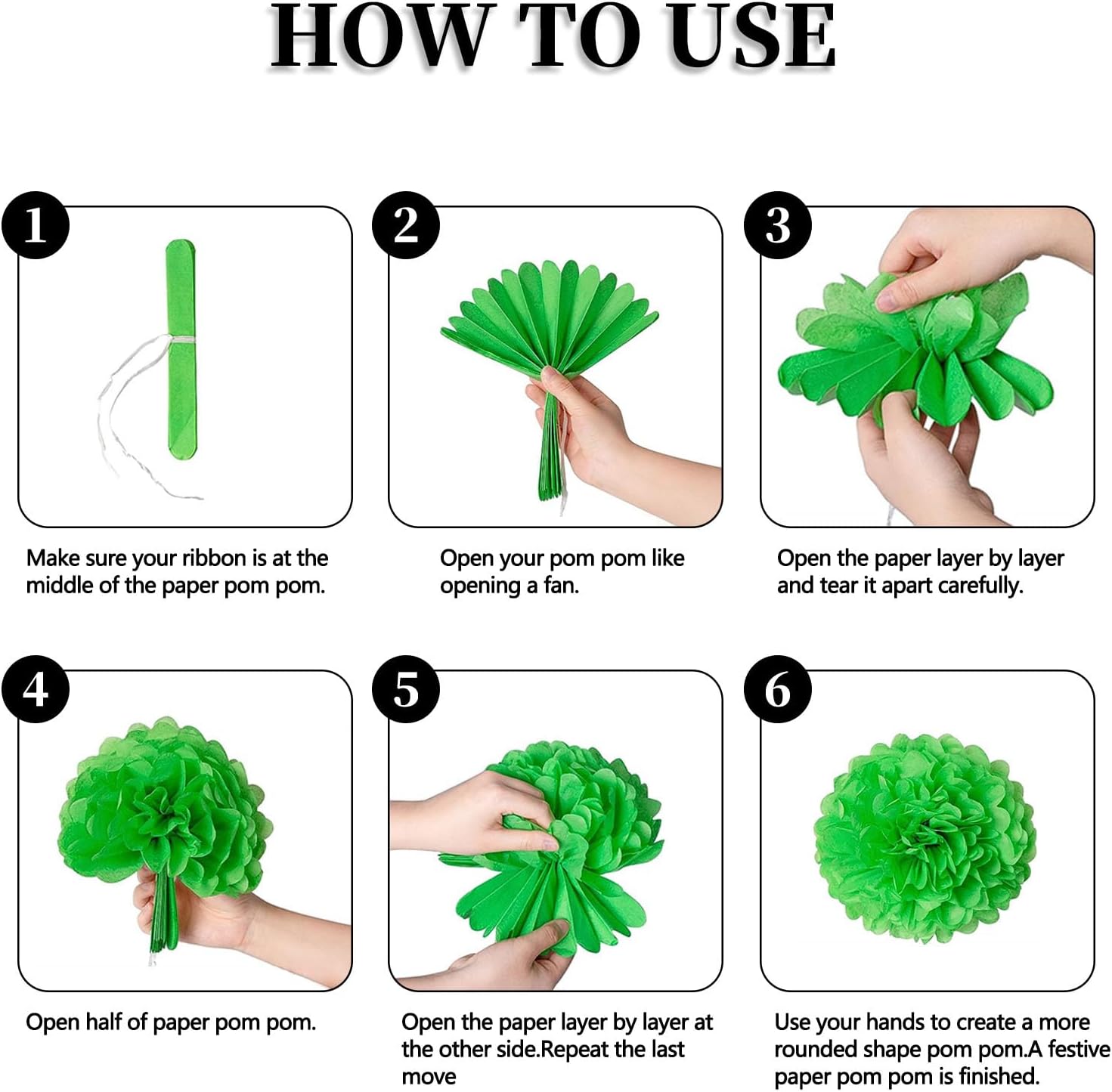 Each pom pom is made from high-quality tissue paper and expands into a fluffy, round flower ball 🌼. Easy to assemble and lightweight, these pom poms instantly enhance ceilings, walls, photo booths, backdrop stands, or balloon arrangements 🎉📸.