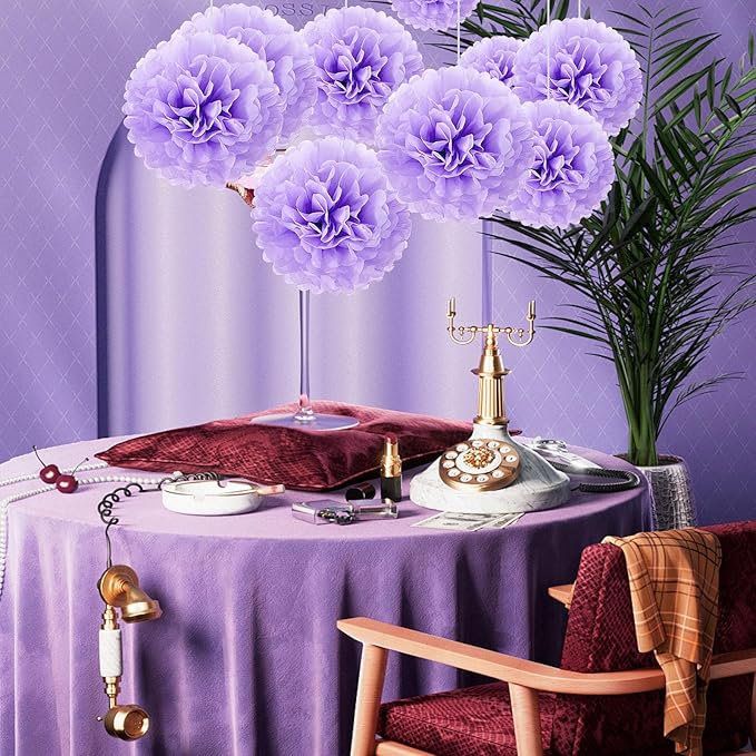 Create a dreamy, elegant atmosphere with these Lavender Tissue Paper Pom Poms 💜✨. Their soft pastel shade adds a gentle and stylish touch to birthday parties, baby showers, bridal showers, weddings, princess themes, or any lavender/purple-inspired décor.